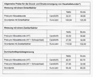 Allgemeine Preise für die Grund- und Ersatzversorgung mit elektrischer Energie. Dieses Preisangebot ist gleichzeitig das Preisblatt zum Allgemeinen Tarif gültig ab 01.01.2023